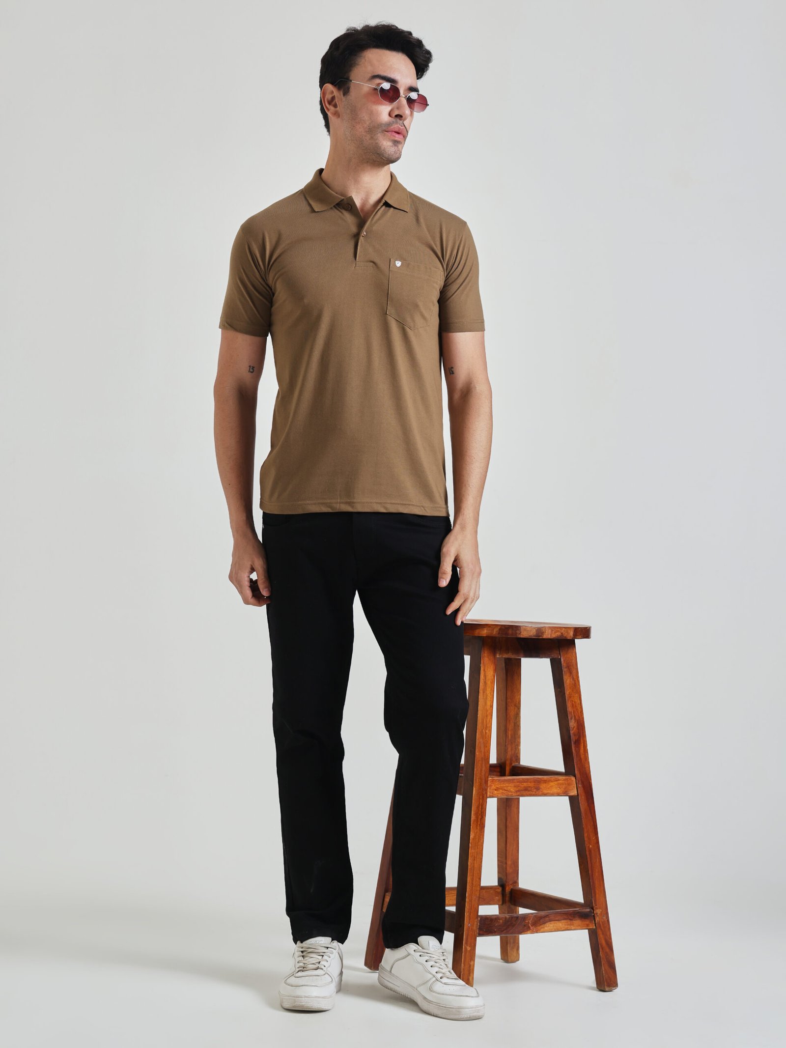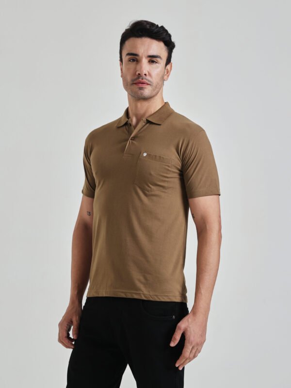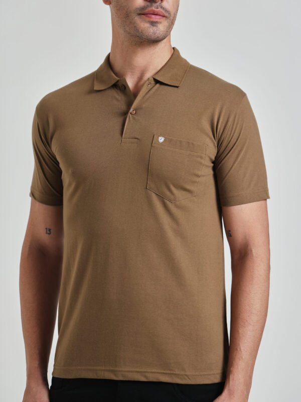 Men’s Solid Brown Polo T-Shirt with Chest Pocket